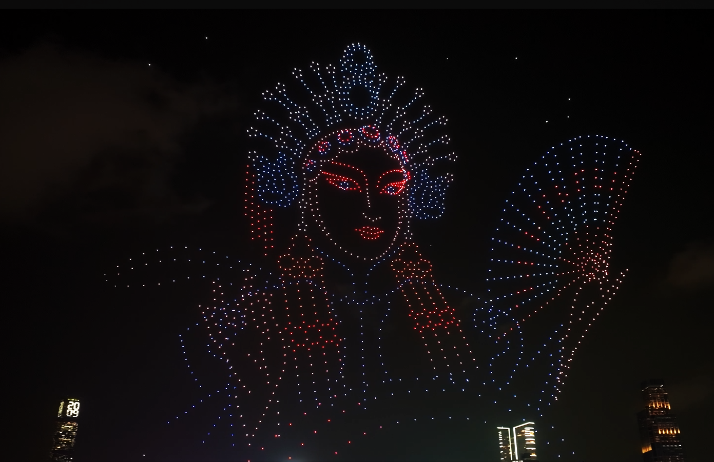 To commemorate the 11th National Security Education Day on April 15, a large-scale drone light show was staged over Victoria Harbour in Hong Kong, featuring 2,026 drones illuminating the night sky outside the Hong Kong Convention and Exhibition Centre at Golden Bauhinia Square.